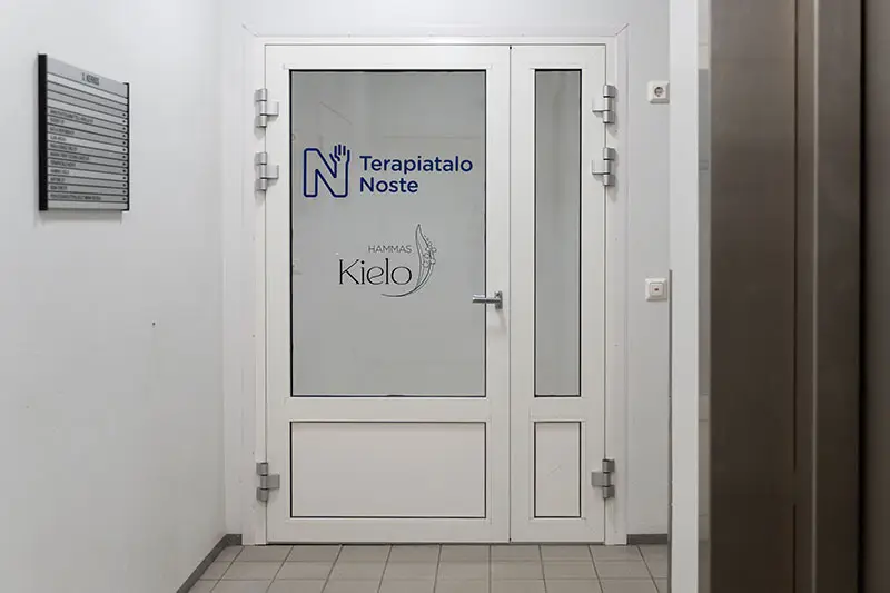 3. kerroksessa on oikealla lasiovi, jossa Hammas Kielon logo. Lasioven jälkeen Hammas Kielon etuovi oikealla. Ovi on auki ja mikäli ovi on lukossa, voit soitaa ovikelloa.